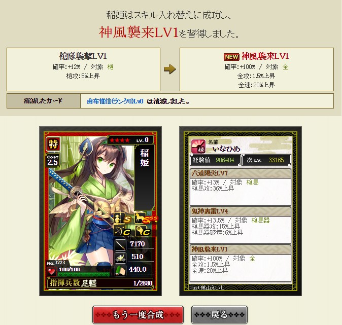 本当はいいスキル付けて転売して150万くらいで売って前田菊姫欲しかったのですね
