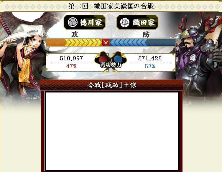 前期は2回(?)を除き、全ての合戦で戦功2万超えしていたので参加できないこの5週間はすごくイライラします
