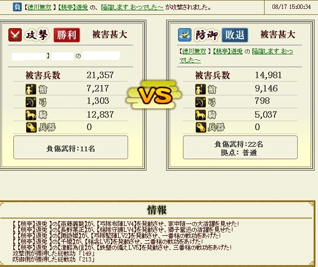 織田の皆さま 感謝 織田の上位陣の方がいなければ負けていました