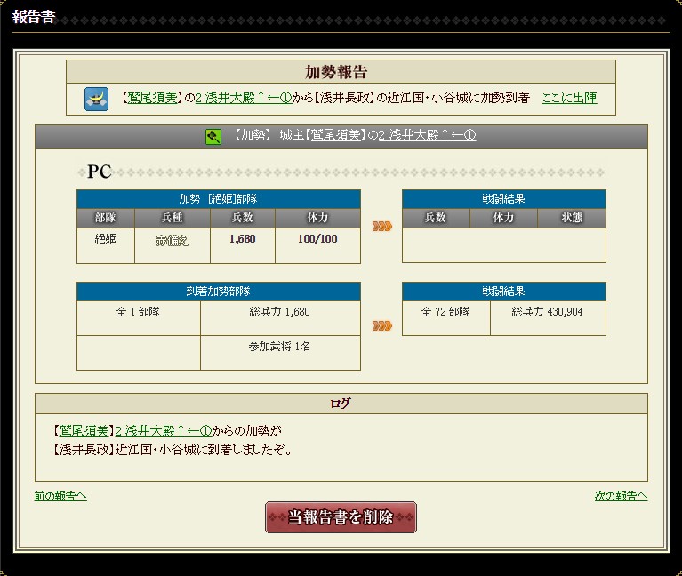 ※ちなみにこの部隊は合戦日の16時過ぎまで大殿城にいましたw