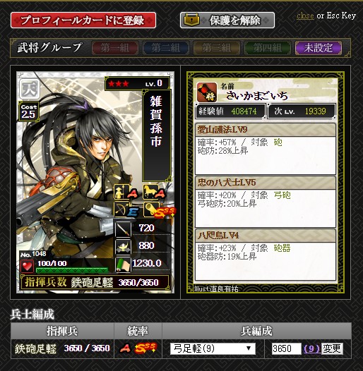 火力だけを考えれば烈火のほうがアリなんだろうけど、馬にも対応させたかったので烈火ではなく旋風をつけました