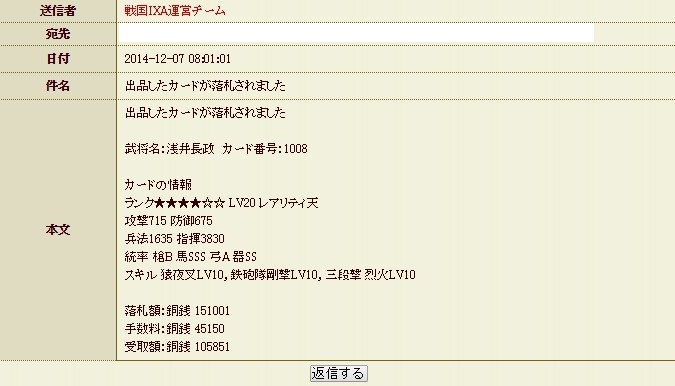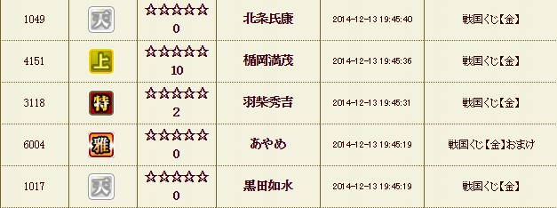 先日、持っていた天武将を売りまたり、その後引いた伊藤一刀斎とか他の黒いおっさん、特をチビチビ売りまくって
