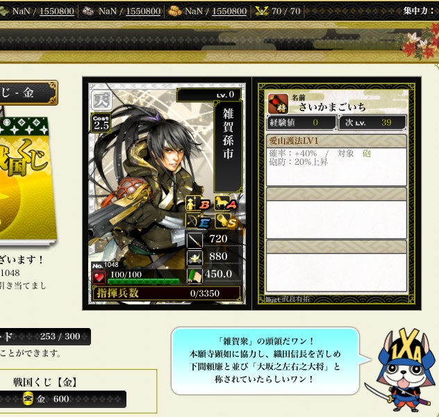 1-16鯖の刷新とともに新天武将が出てきました