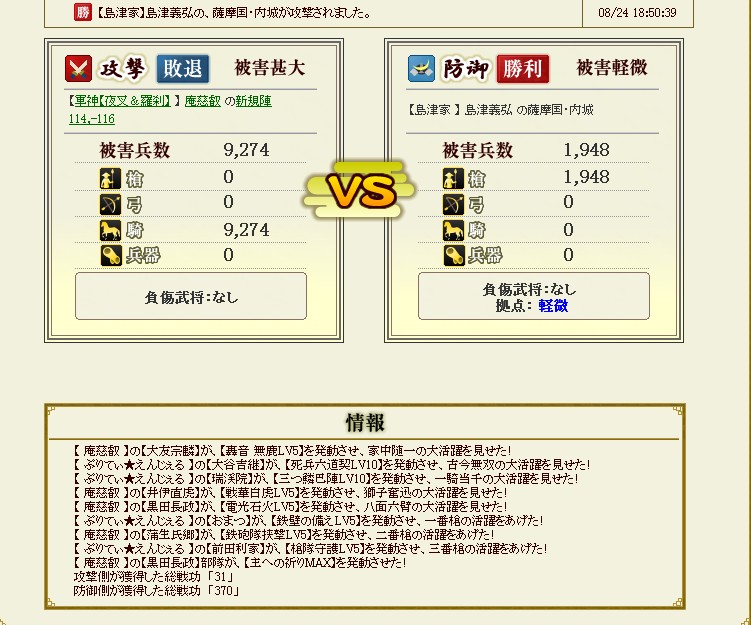 夏休みの土日の合戦ってサイコーですね