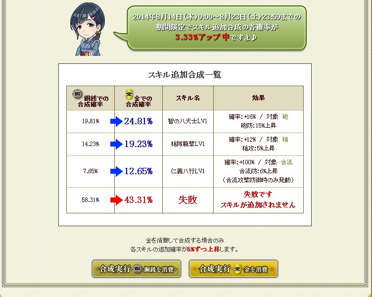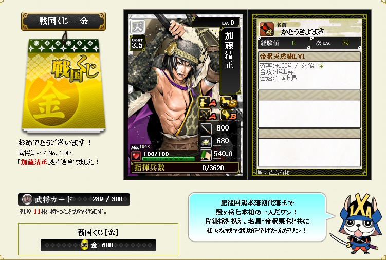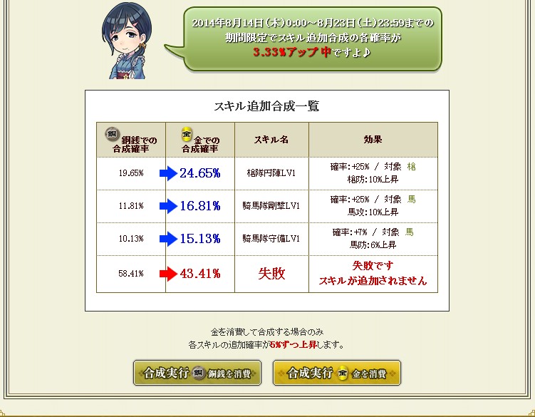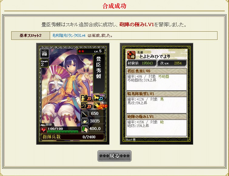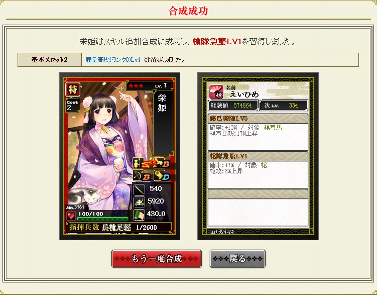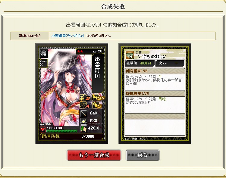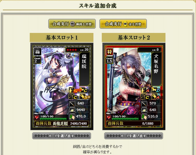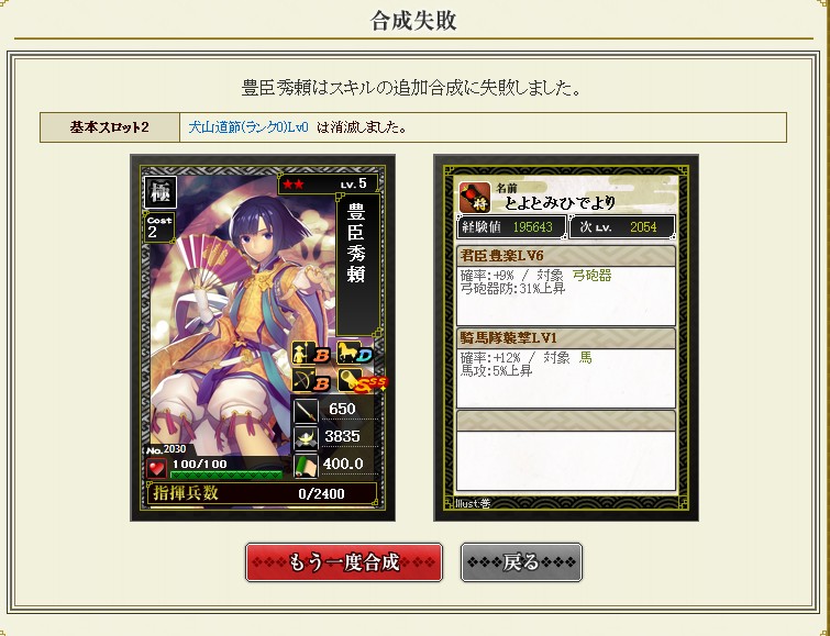 運はまだまだ眠っているようです(上のSSは剛勇狙いです)