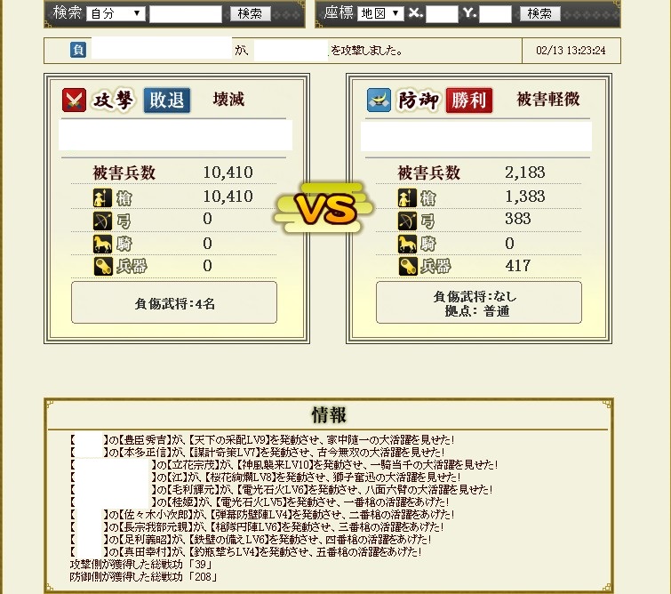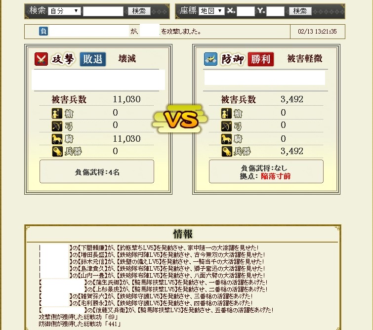 防衛戦については自分のお城が砦の近くにあるので、そこからテキトーに凸して数個の出城を落として終了