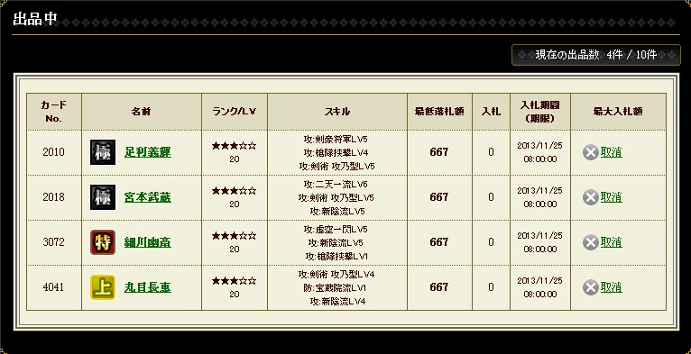 とりあえず、もうスタダの必要はないので剣豪から出品していこうかな