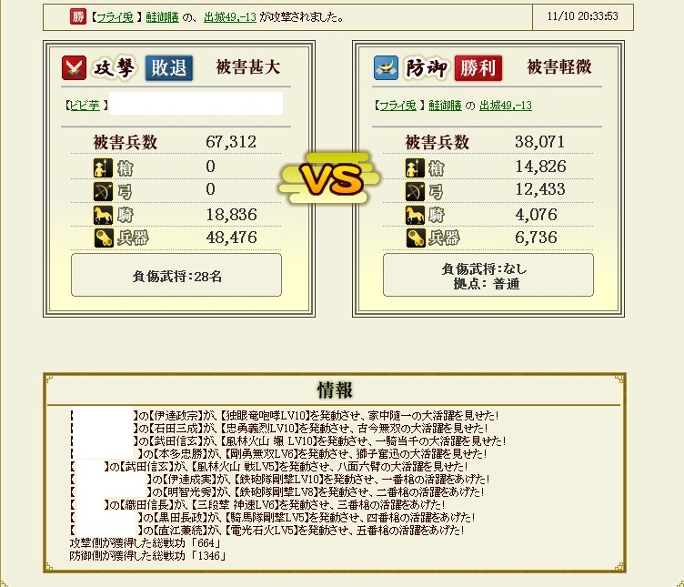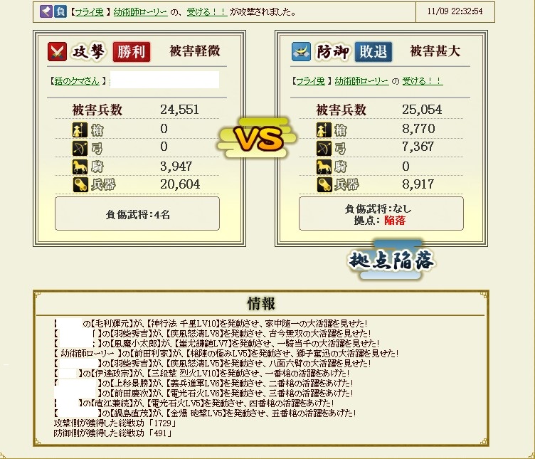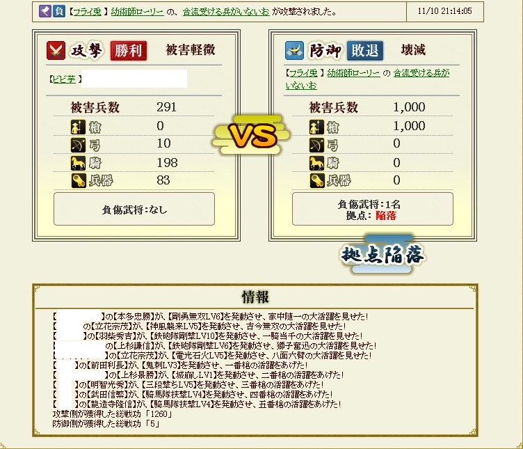 陣貼りをサボると合戦は究極につまらない!!合戦お疲れさまでした