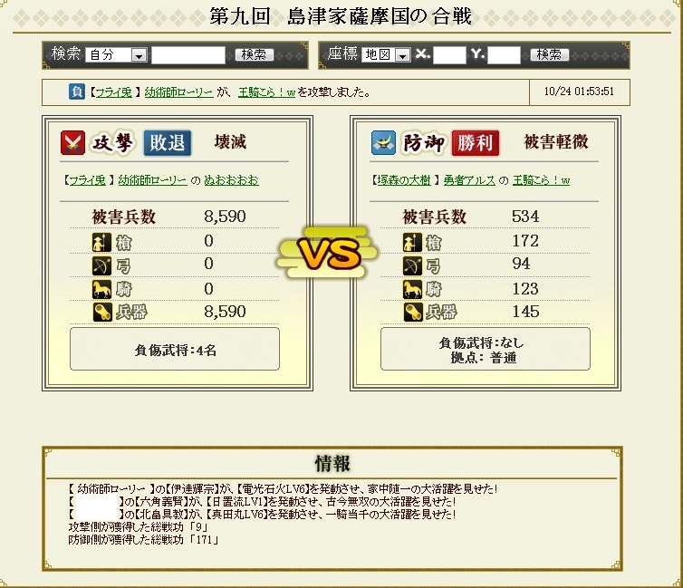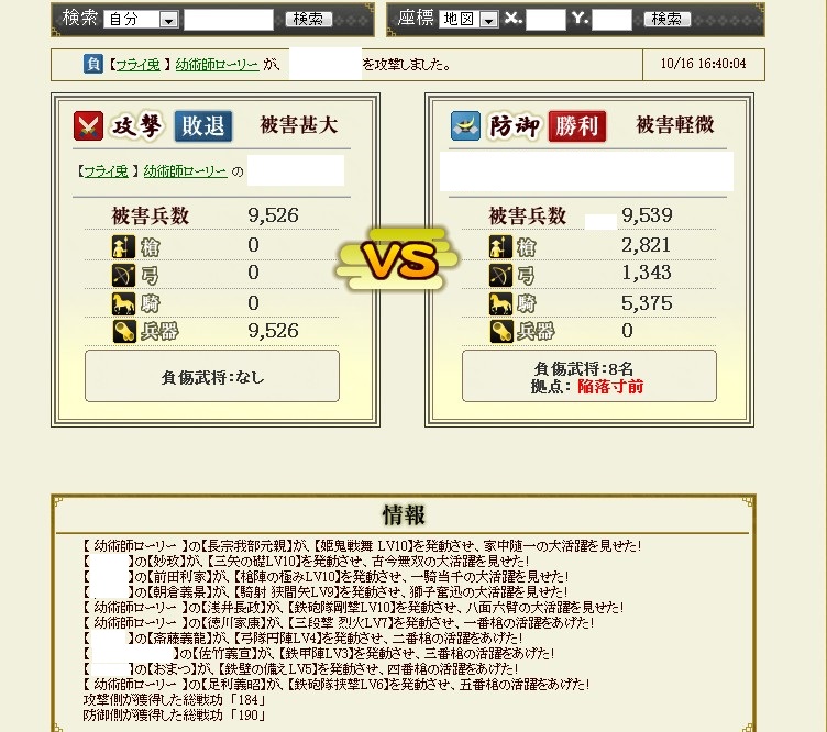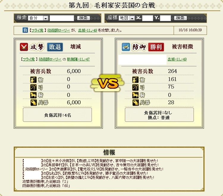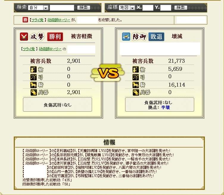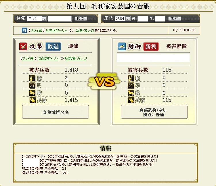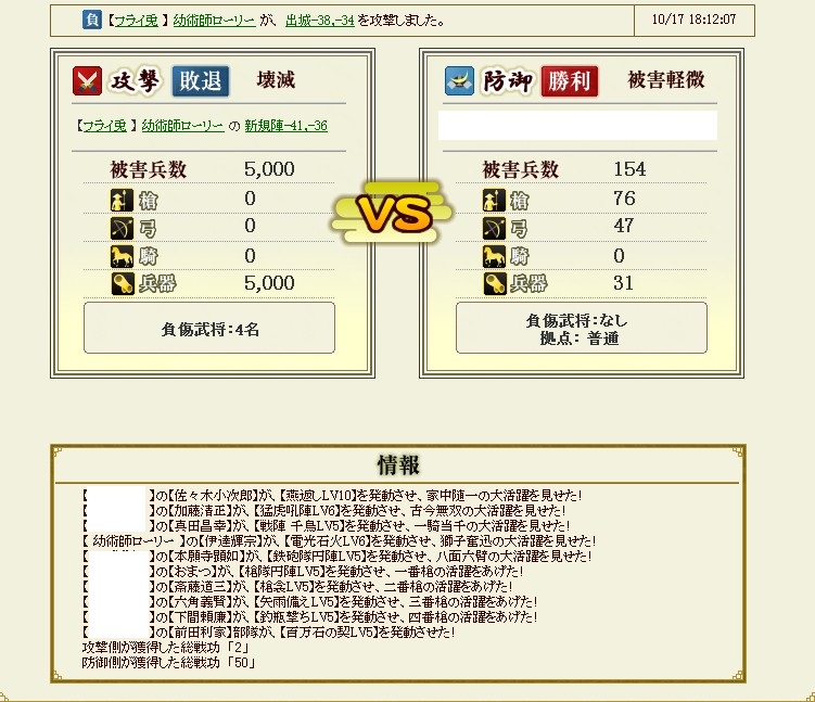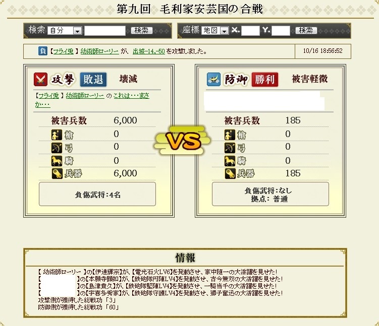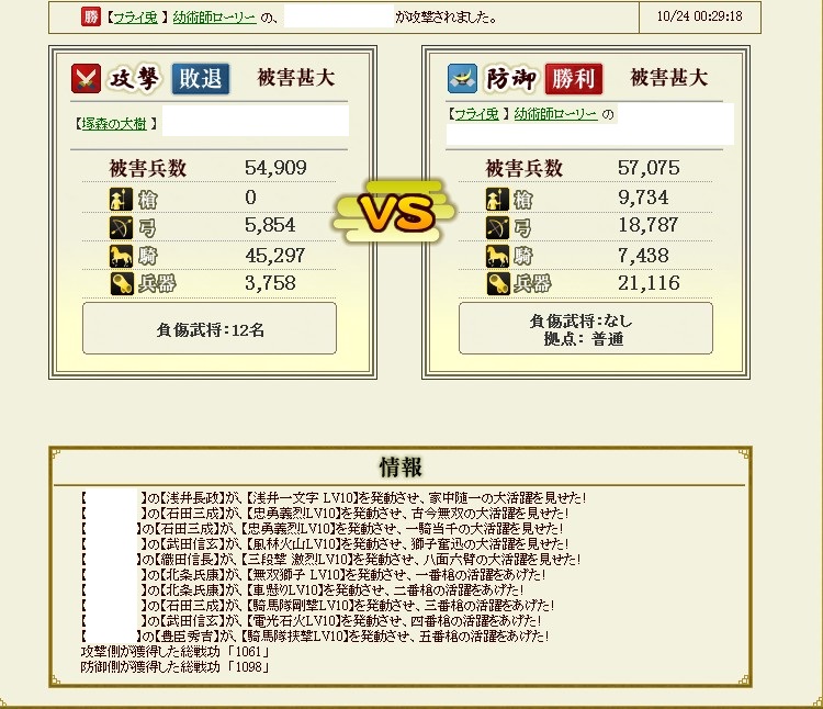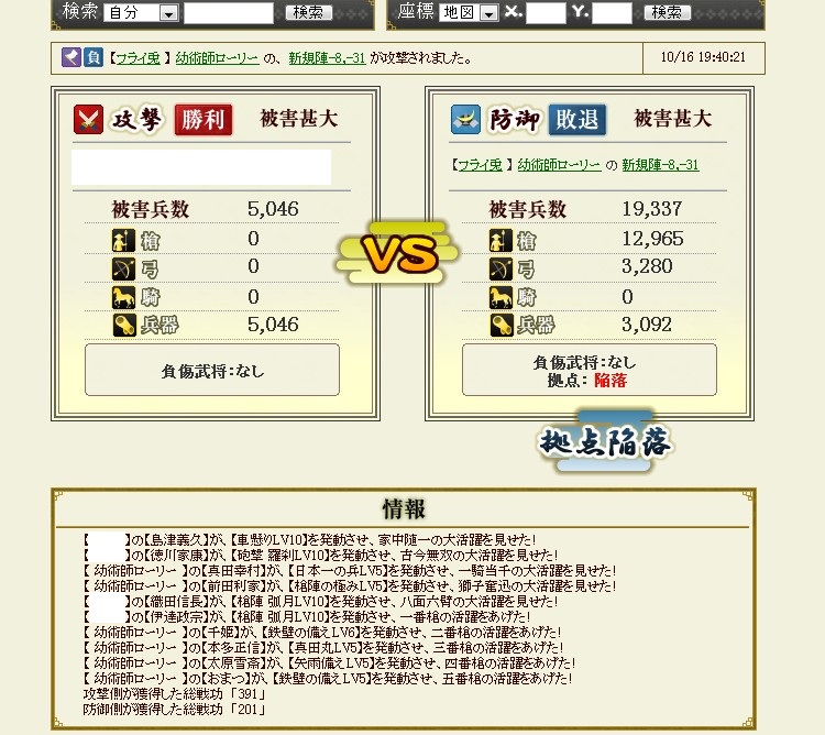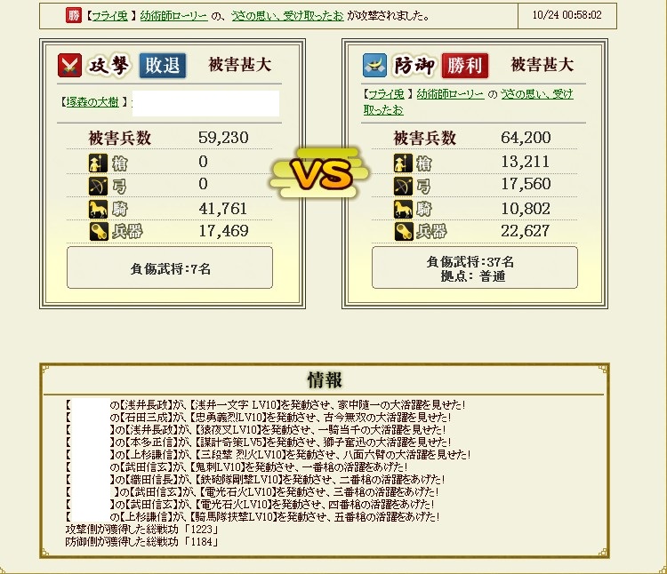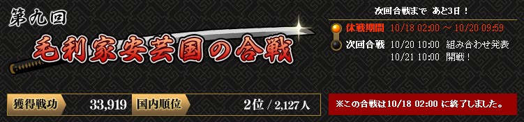 個人的に楽しかった攻撃戦でしたが、戦功を業者に頼ってしまった点が不満ですかね