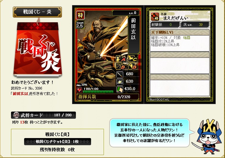 ☆2ってことはランクアップ用の武将なのかな