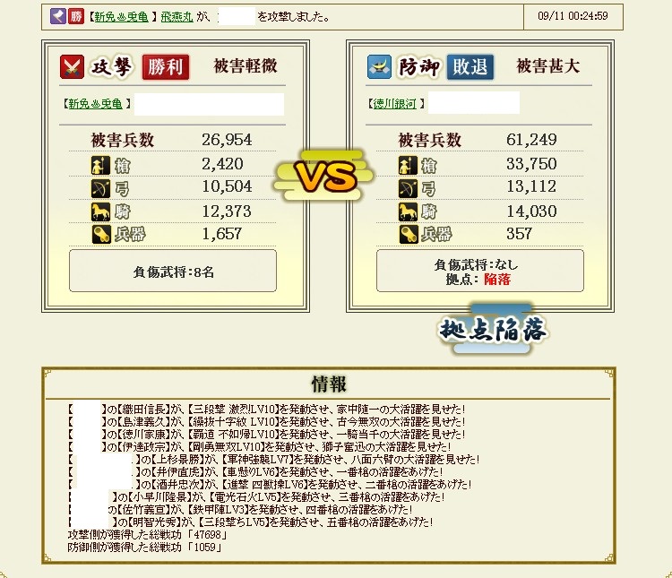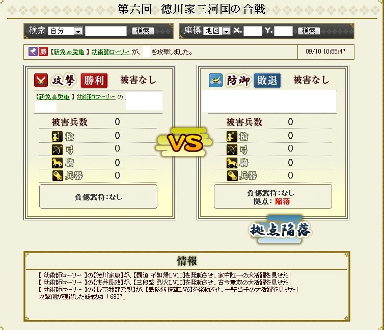 自分は今回の徳川戦では業者の城を落としたのは1個だけですかね?