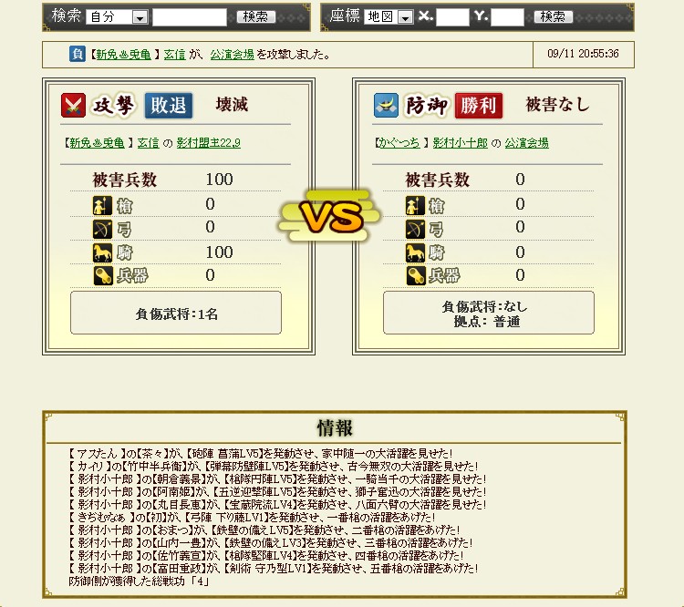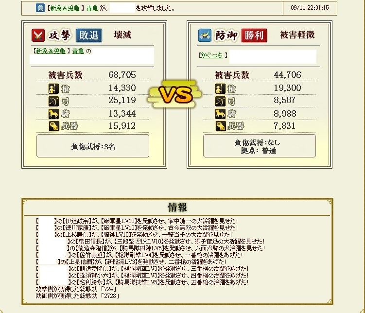 なんかね。無血(たまに兵1がありますが)確定だし、何度も復活するし、あれで1回につき戦功300ちょっと稼ぐのって形はどうあれ複垢と変わらないような気がします。ってのが自分の考えです(のわりに影武者大好きw)