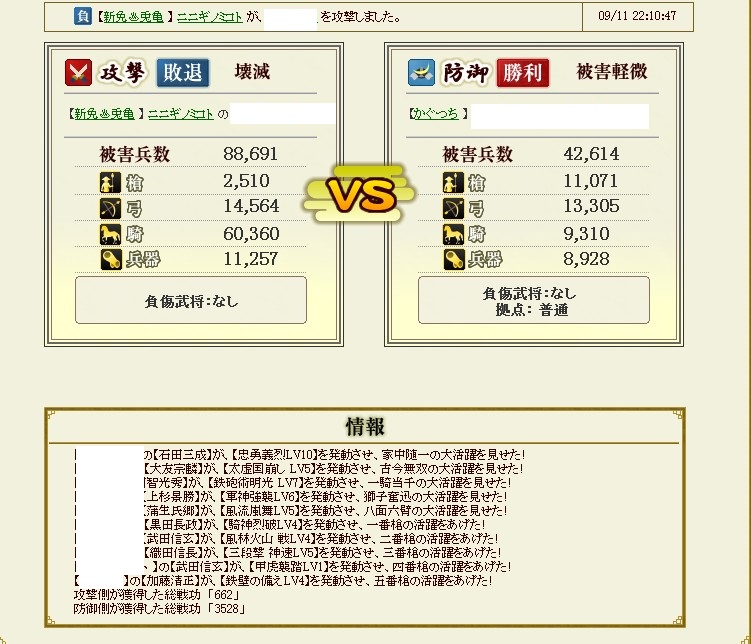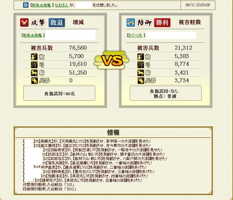 これでダメージは21万は超えています(つまり天守10、本丸10は落とせます)