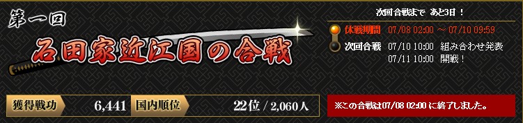 戦功:6441(22位)☜初日の午前中INできていれば・・・