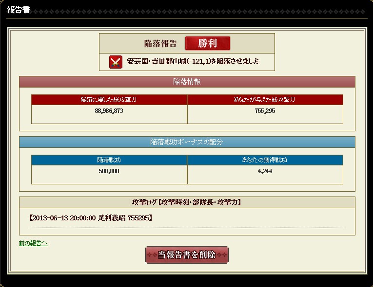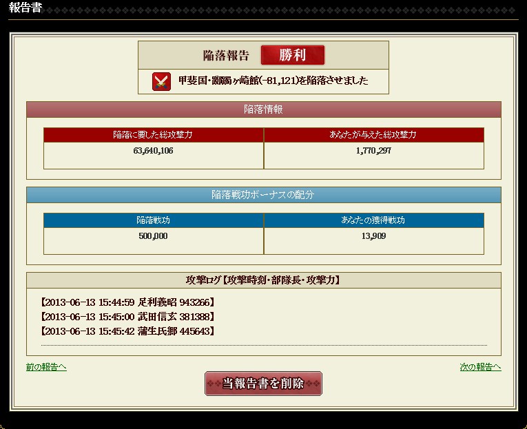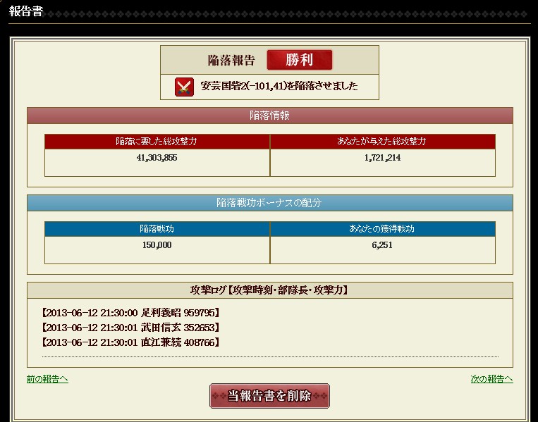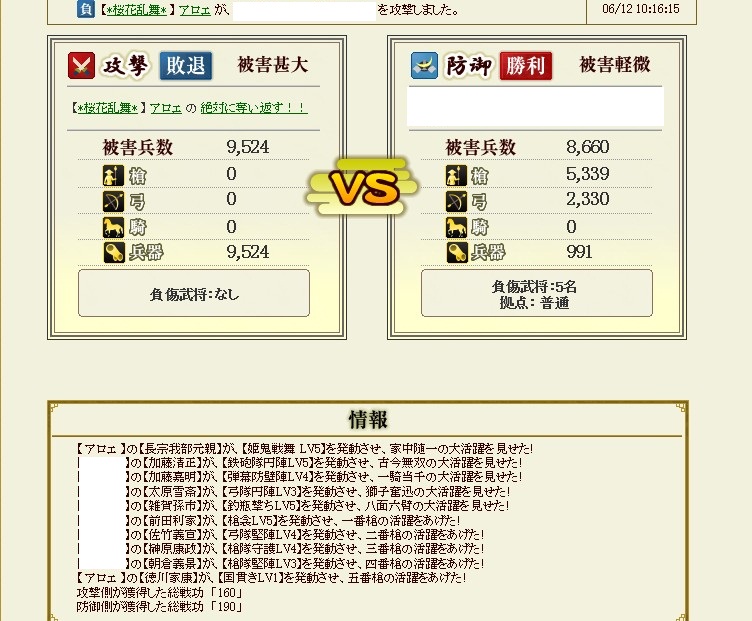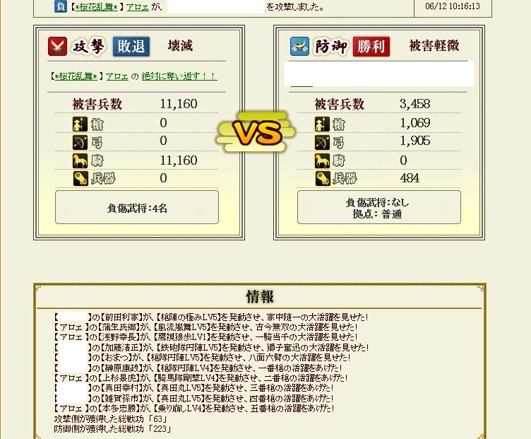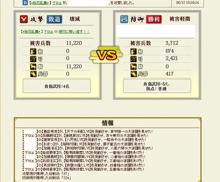 嬉しかったのは徳川の方が4時間の遠距離で攻撃してきている人の陣を潰してくれたこと^^
