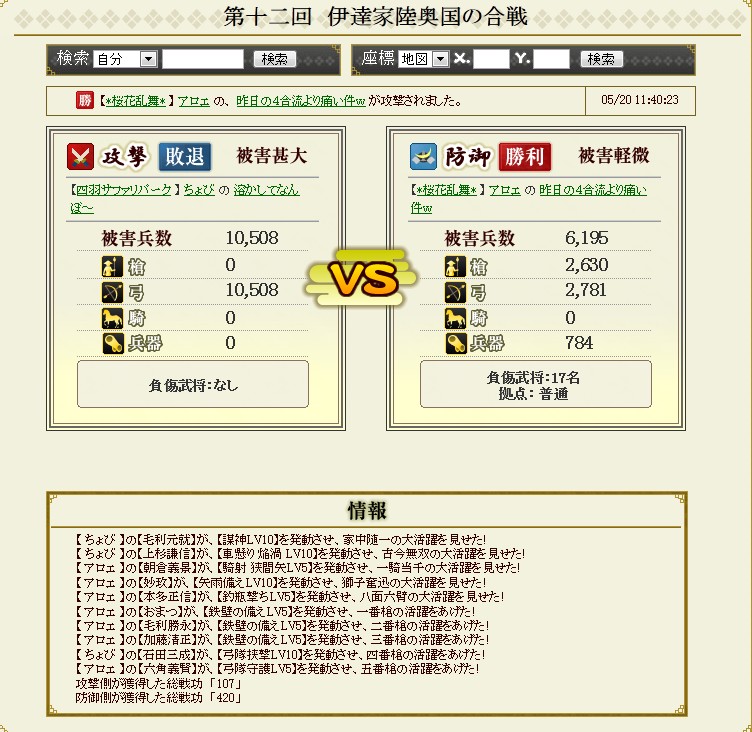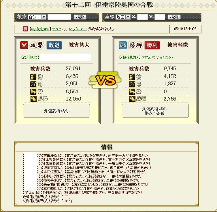 3合流でした。なんとか勝利。陣破壊は正解だったようです