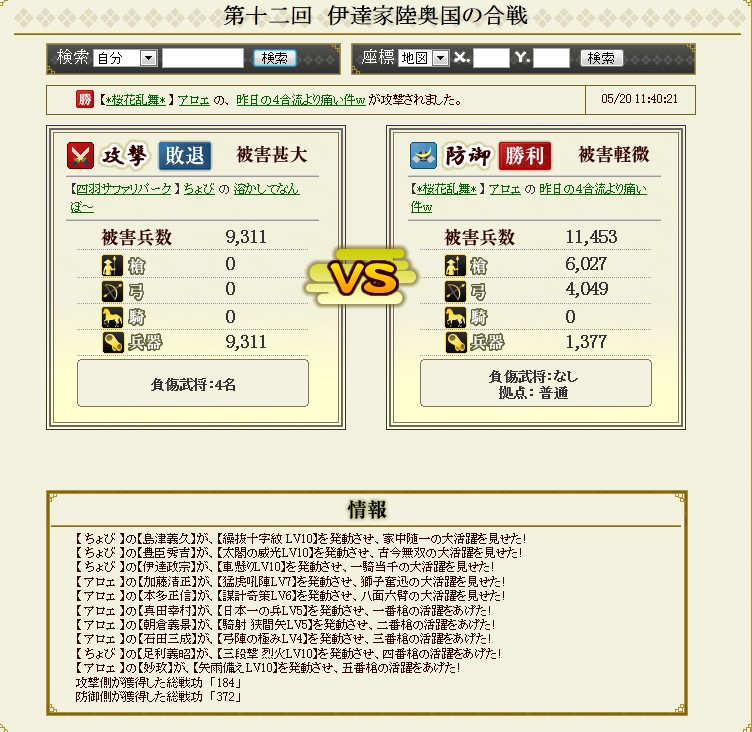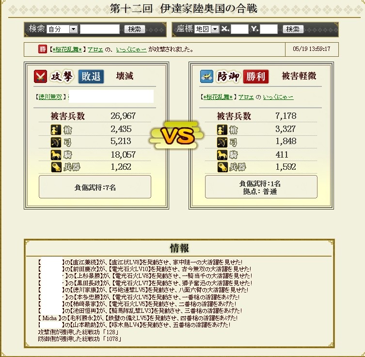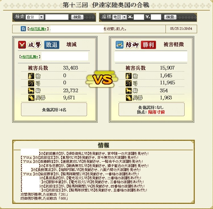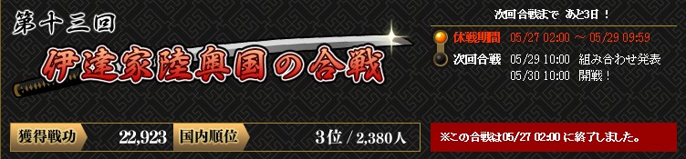 戦功:27773(3位)☜負け確なのに頑張ったよ!!居留守されまくって泣きそうだったけど