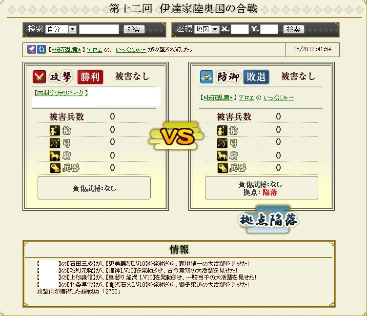 今回は本領陥落1。村陥落2。盟主城陥落せず!! でした