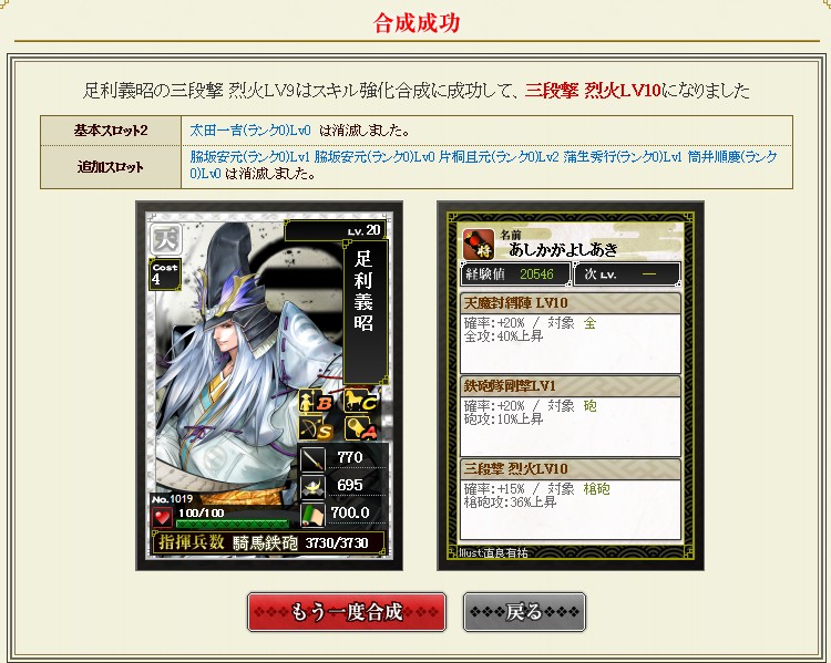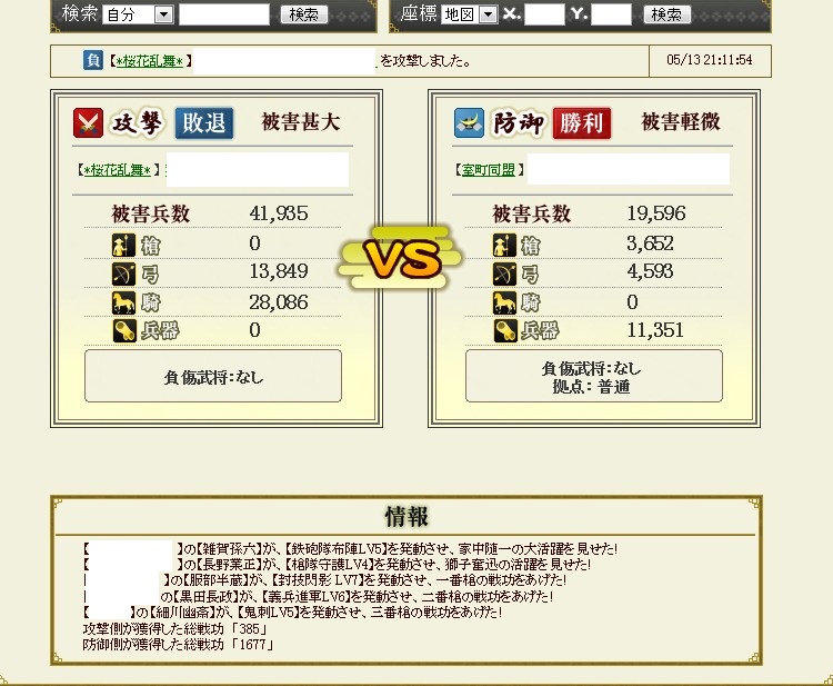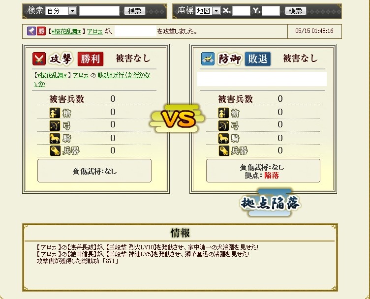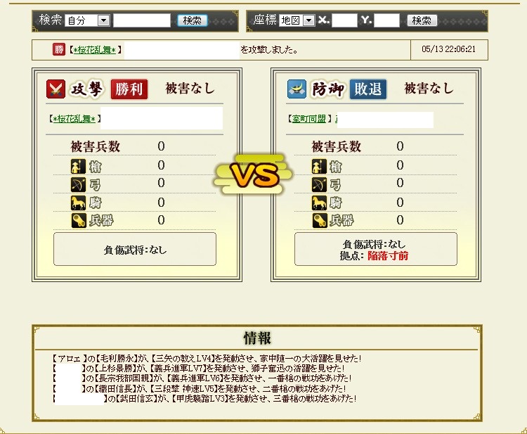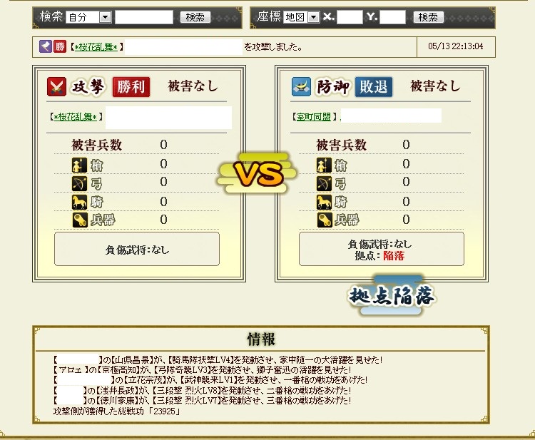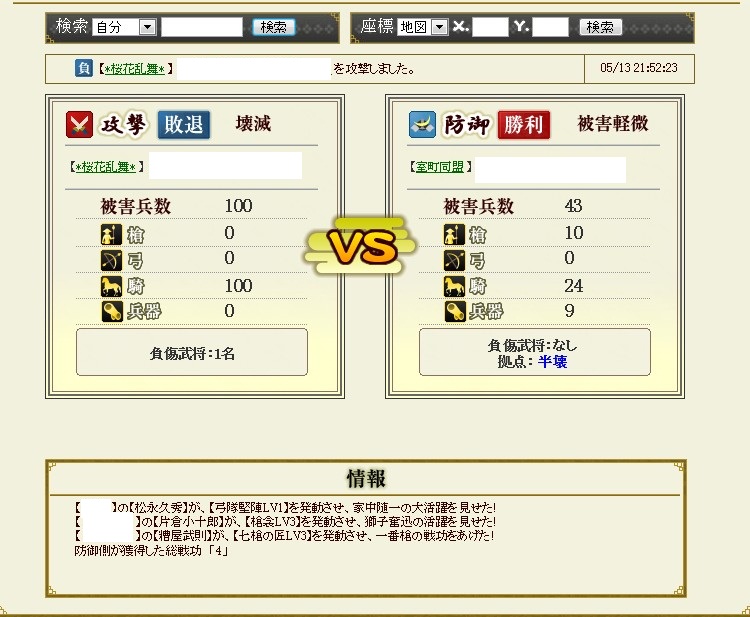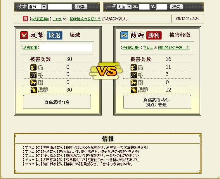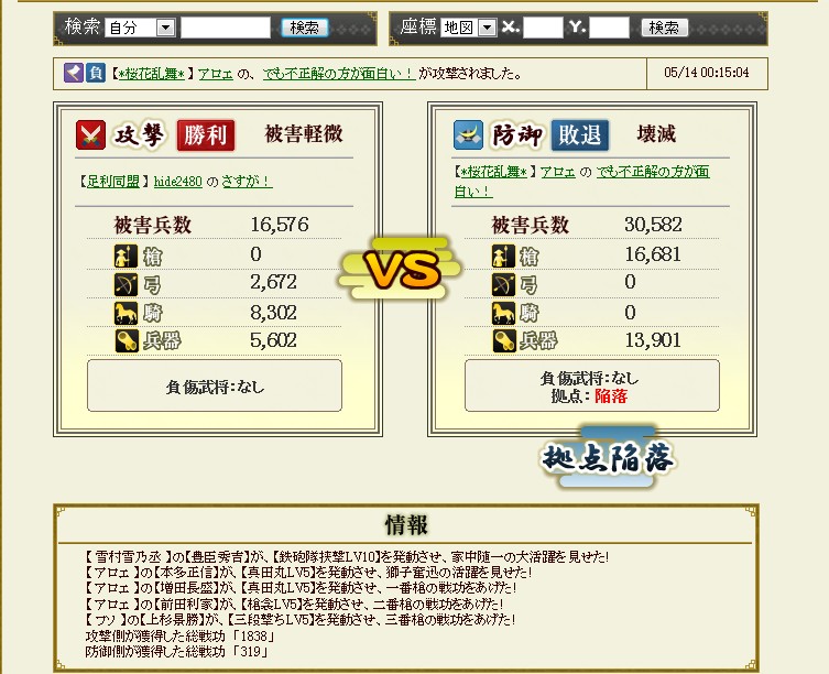 出城陥落1でした。足利家には攻めでも防衛でも10合流を食らいました