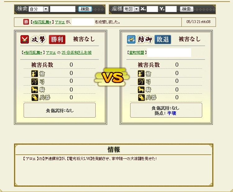盟主さんが「どこ攻めたいですかー」と言っていたので、前のネトゲからお世話になっている師匠のお城を攻めたいと提案