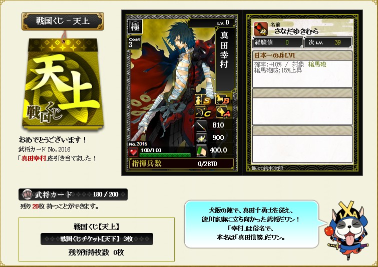 次からはもっと冷静に分析して出城を希望しようと思います。ちょっと冷静じゃありませんでした