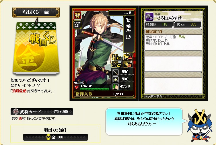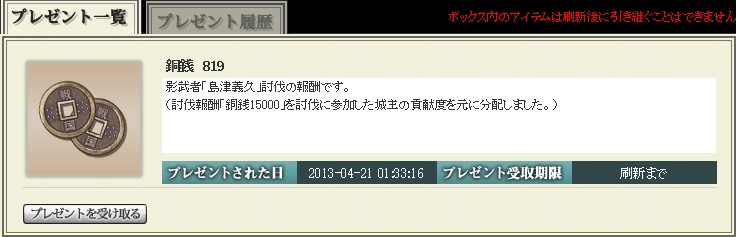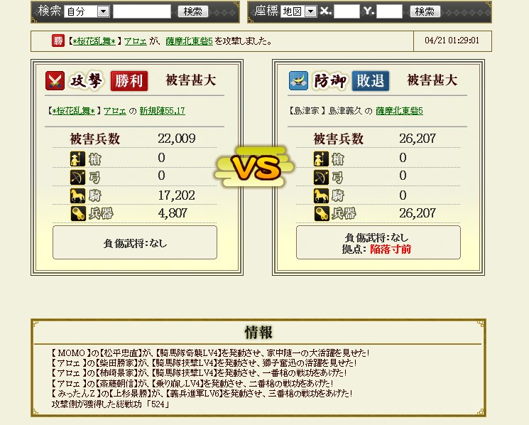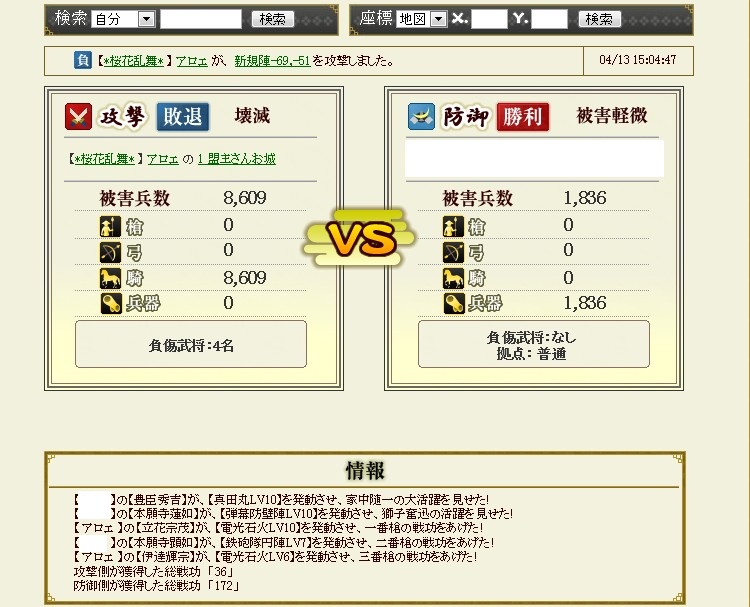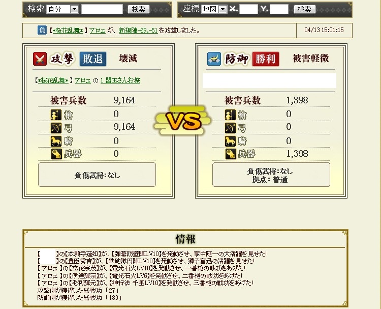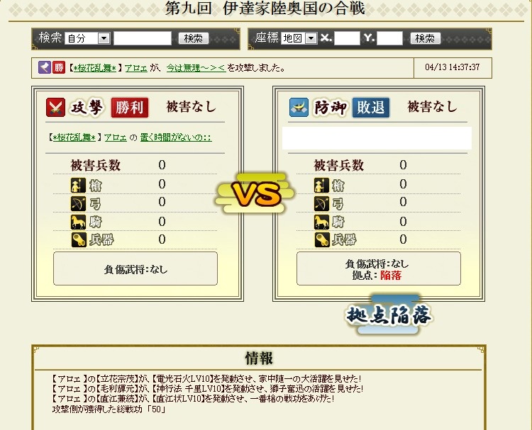 なんか普段の合戦で頑張っているのが・・・うーむ・・・まぁ、なにも言わないのがいいでしょう
