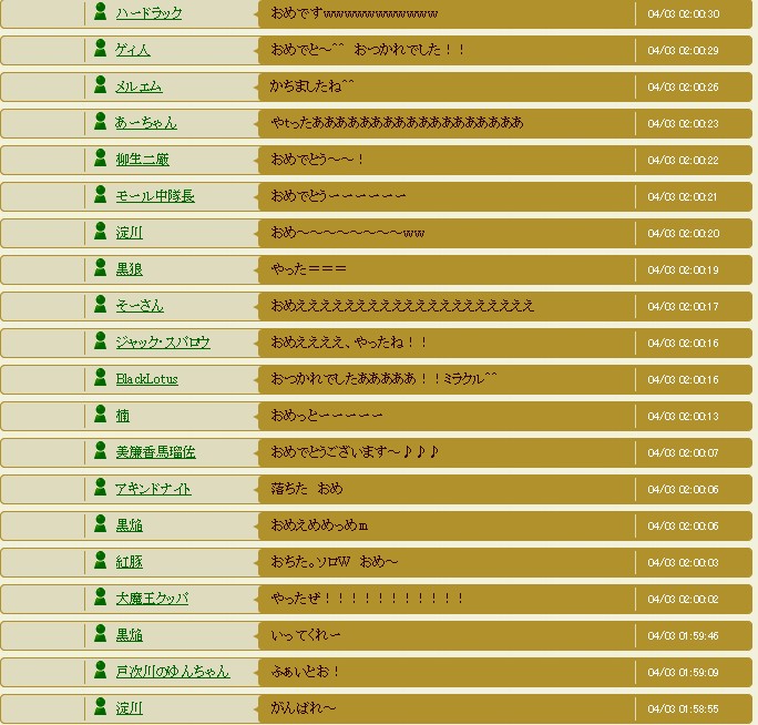 そのときの喜びの様子です(書き込みがドンドン来てたので一部の方が載せれてないかも)