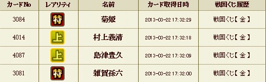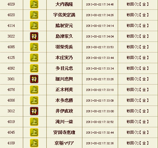 今回の新武将は課金クジじゃないとゲットできないし・・・