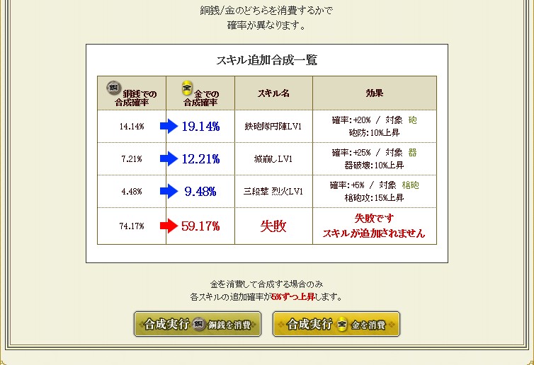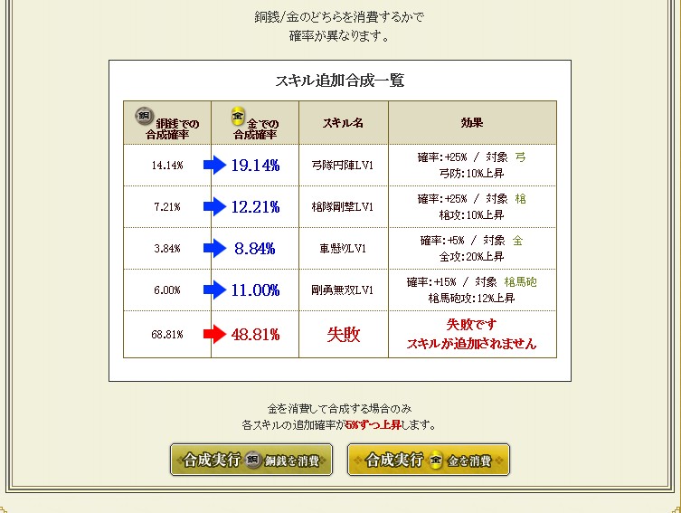 前回の騎馬隊円陣3連チャン思い出すのがもうちょっと早ければ一旦止めて様子見で何度か別の合成しに行ったのに・・・