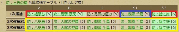 ということで、1回目で3番目のスキルが付いたことを考えて、3番目のものを本命にした合成を持ってきました