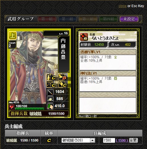 上杉軍団にはまだ部隊スキルがありません