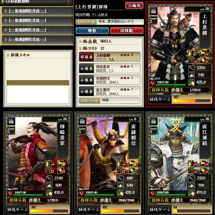 上杉家で極部隊が作れるようになりました!!