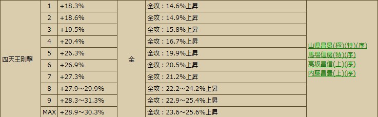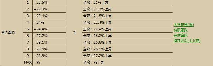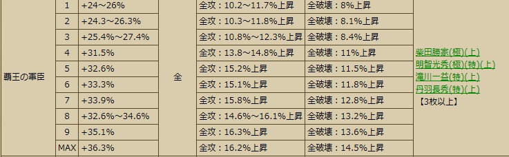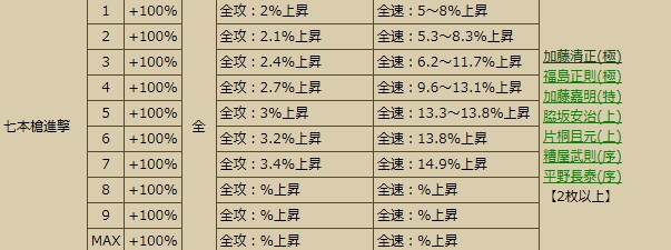 豊臣家(七本槍進撃。賤ヶ岳の戦いのスキル。清正・正則で使っている人が多い気がします)