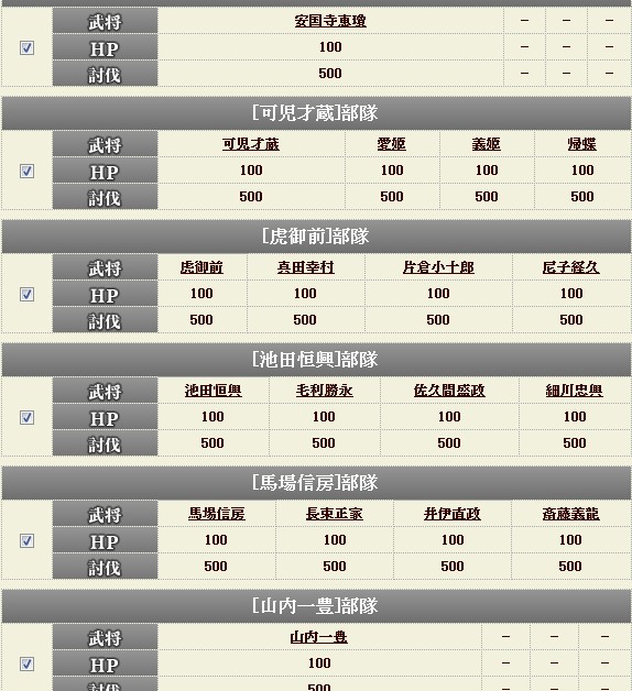 初戦(武田戦)で落ちていなければ、陥落回数は「1」(落ちていれば「2」)