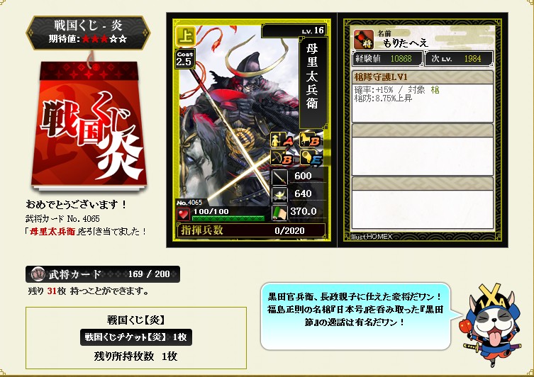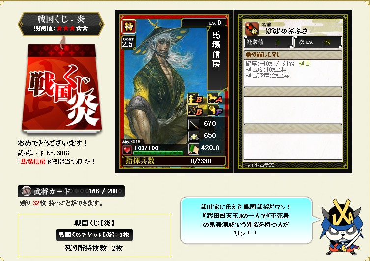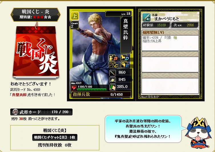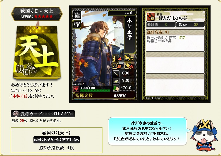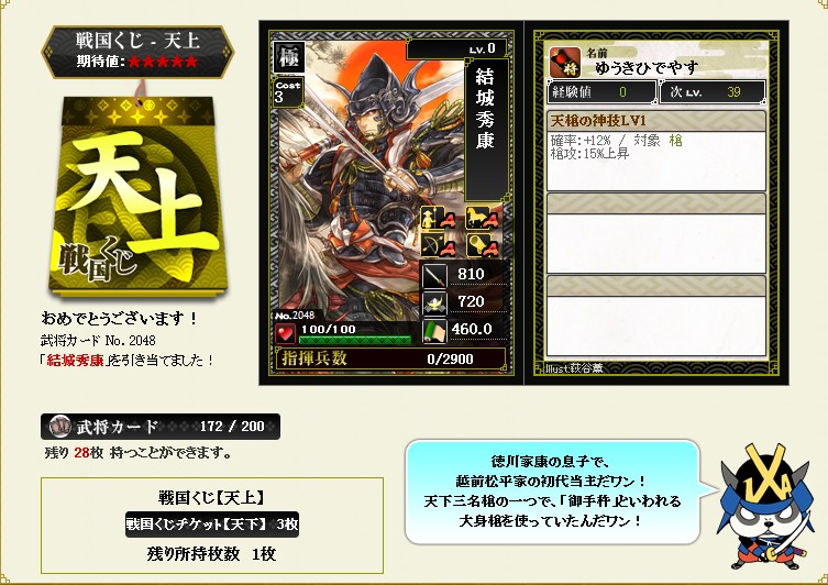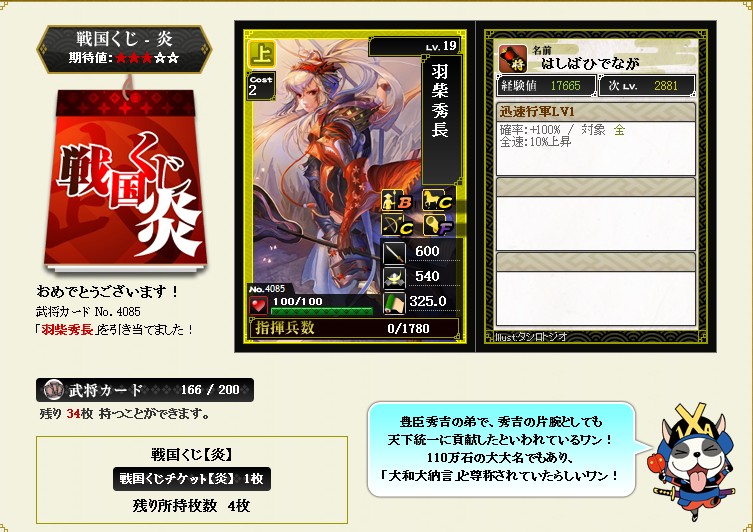 戦国ぎじで良い結果が出たので、報酬チケを引いてきましたよ