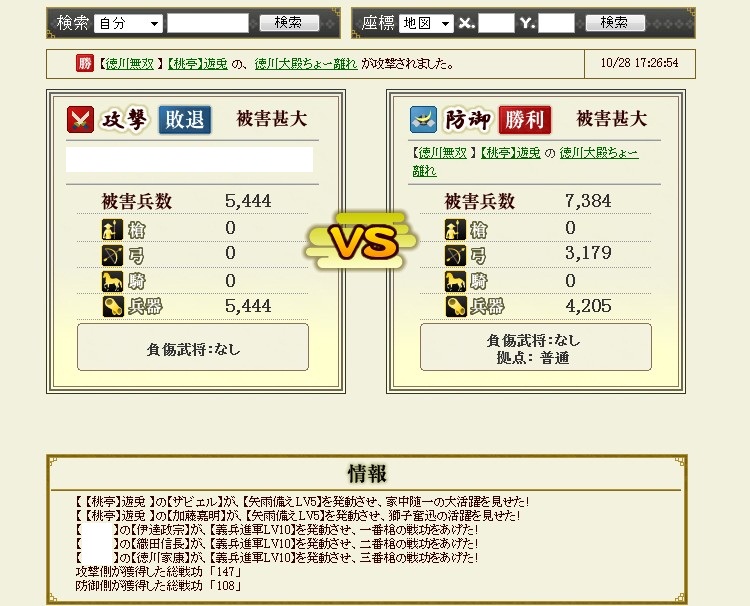 ということで、今回の速度部隊が襲って来たときの結果がこちら