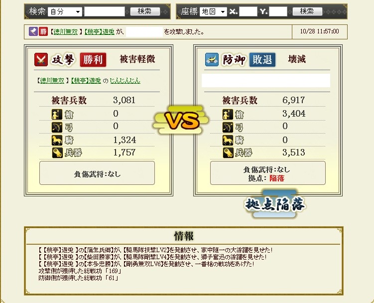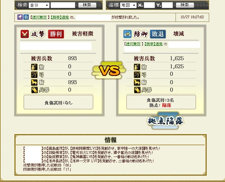昨日、砦攻略時にフル騎鉄を出していた陣に残り3分のところで、前にお世話になった同盟の盟主様から攻撃が来ました