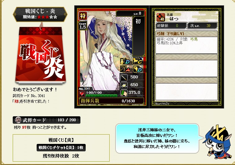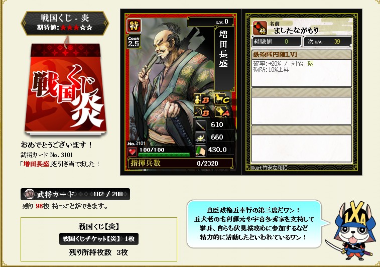 いつか白い武将2枚目が自分にもきっと来てくれる!! と信じてる!!
