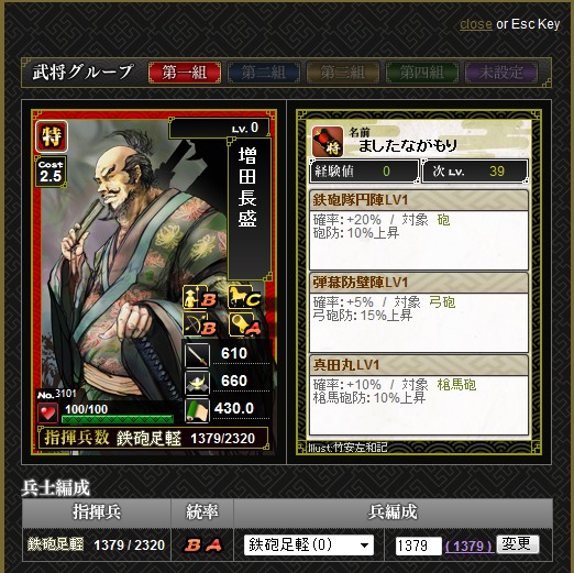 円陣がついてるから第1:鉄砲隊剛撃 第2:神行法 第3:弾幕防壁陣 です