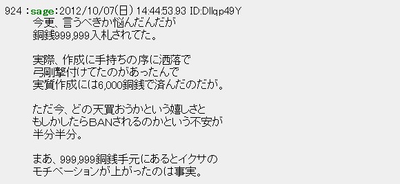 ちなみに使用した 銅銭:約12000 金:約500