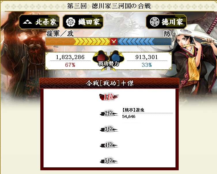 今回は織田さんと北条さんに攻められるといった感じの戦いでした
