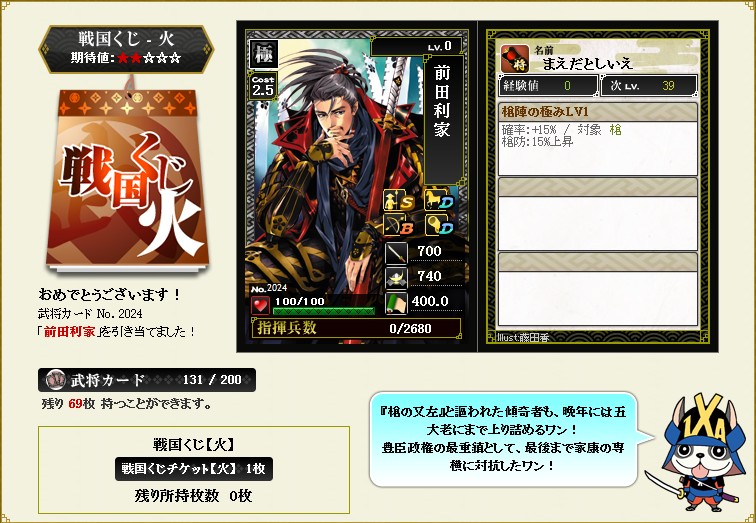 ただ、極利家は10日ほど前に炎チケで手に入れたのですがw