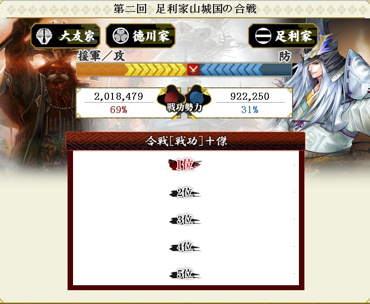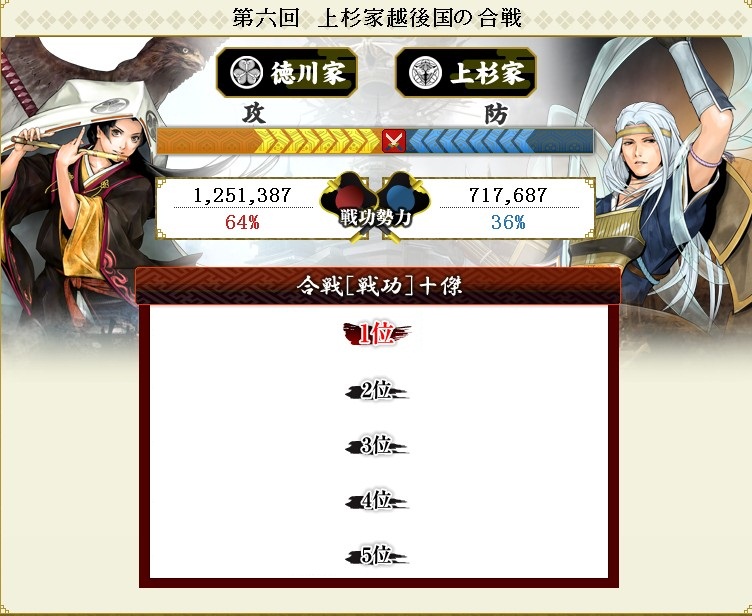 次はどうなるか楽しみですが、次合戦は参加できないのでどーでもよかったり